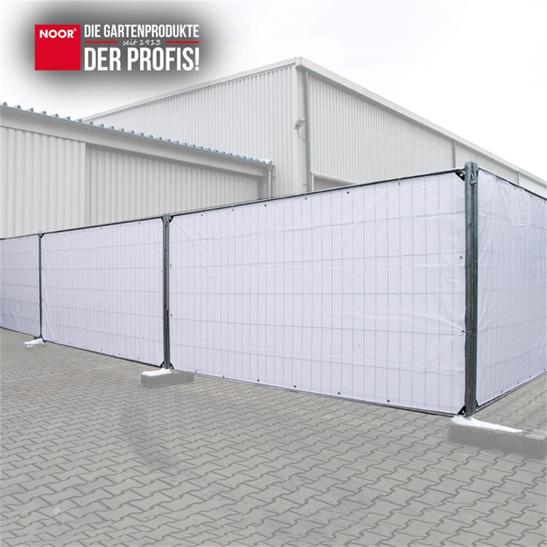 Sorgen Sie für Ordnung und Diskretion auf Ihrem Gelände. Die NOOR Bauzaunplane PROFI in klassischem Weiß wurde speziell für den Einsatz an handelsüblichen Mobilzäunen entwickelt. Mit ihren Maßen von ca. 1,76 x 3,41 m bietet sie eine passgenaue Abdeckung und dient als zuverlässiger Sicht-, Spritz- und Schmutzschutz bei Bauvorhaben oder Großveranstaltungen.