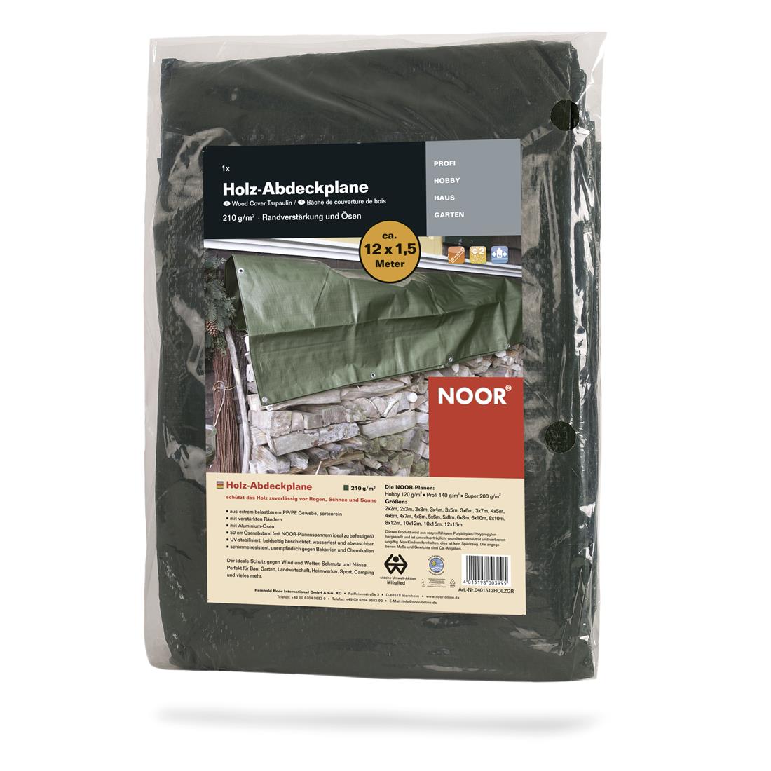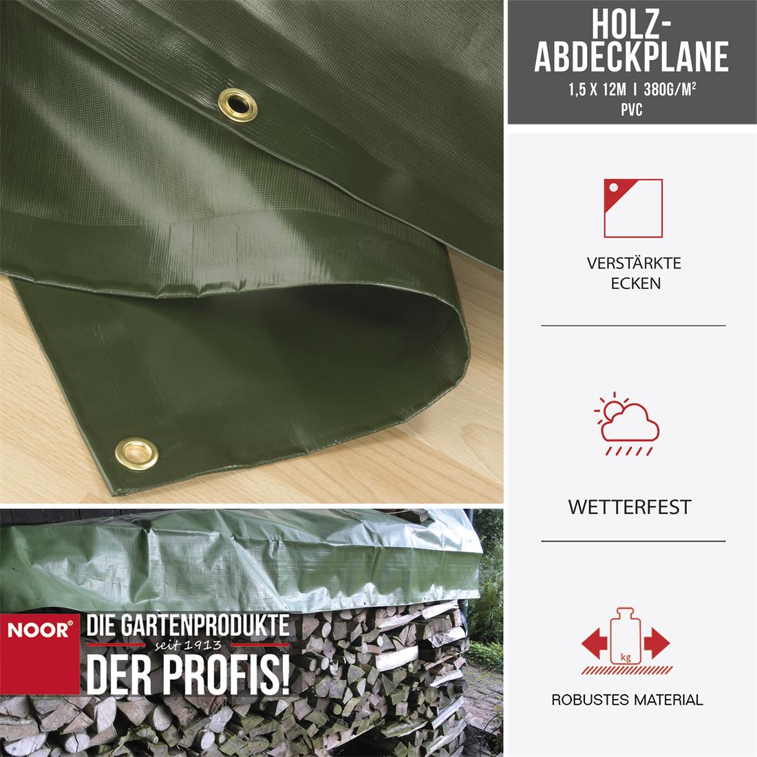 Profi-Schutz für Ihr Brennholz – NOOR Holz-Abdeckplane PVC (1,5 x 12 m, 380 g/m²)