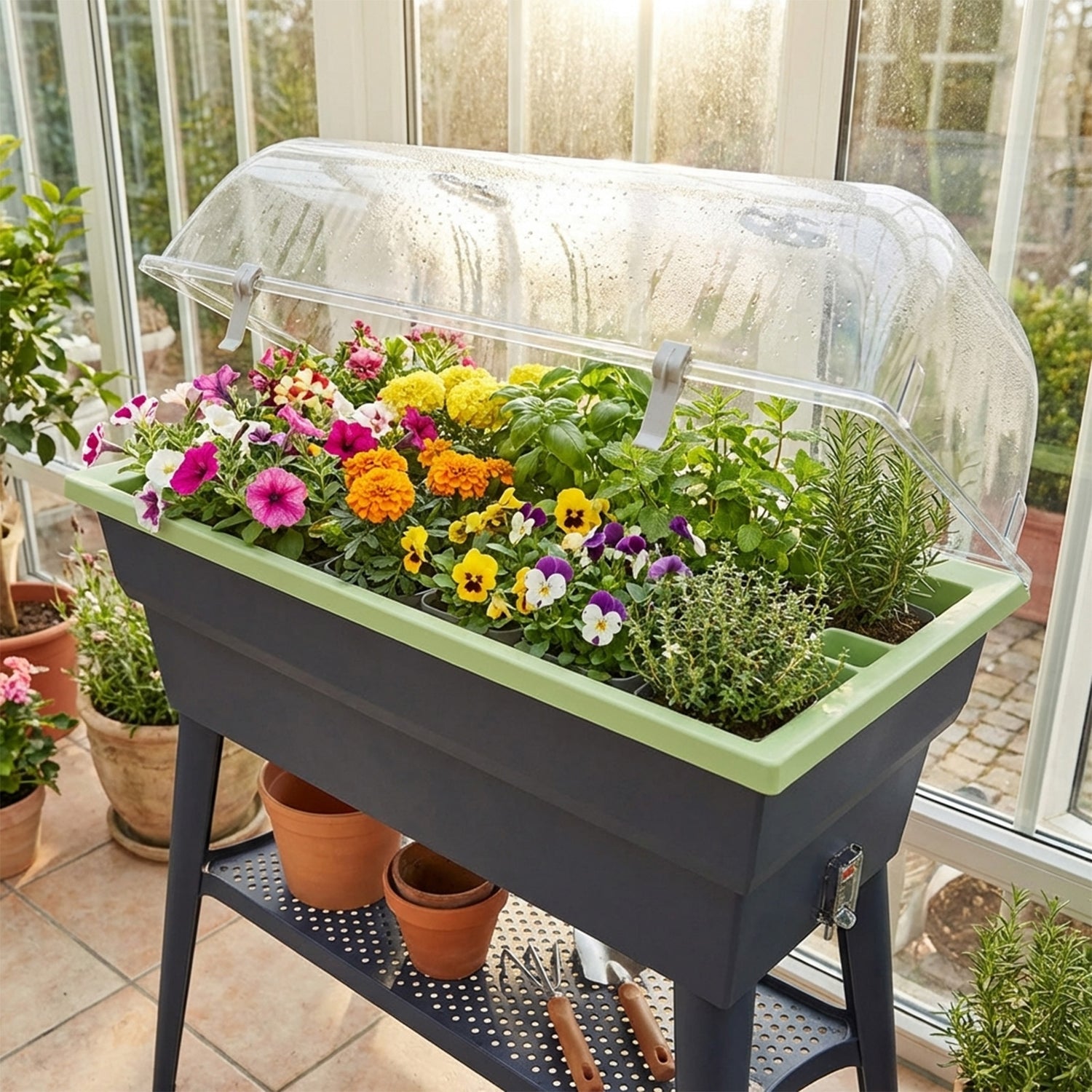 • Inklusive Abdeckhaube zum Pflanzenschutz