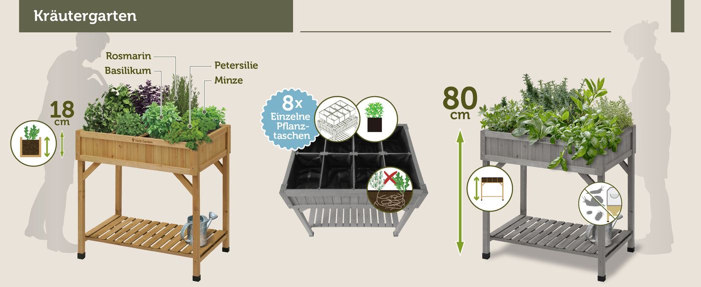 Der VegTrug® Kräutergarten ist die ideale Lösung für frischen Kräuteranbau auf kleinem Raum. Mit seinen kompakten Maßen von ca. 78 × 58 × 80 cm eignet sich das Kräuterhochbeet perfekt für Balkone, Terrassen, Innenhöfe und kleine Gärten. So genießen Sie jederzeit frische Kräuter direkt aus eigener Anzucht.