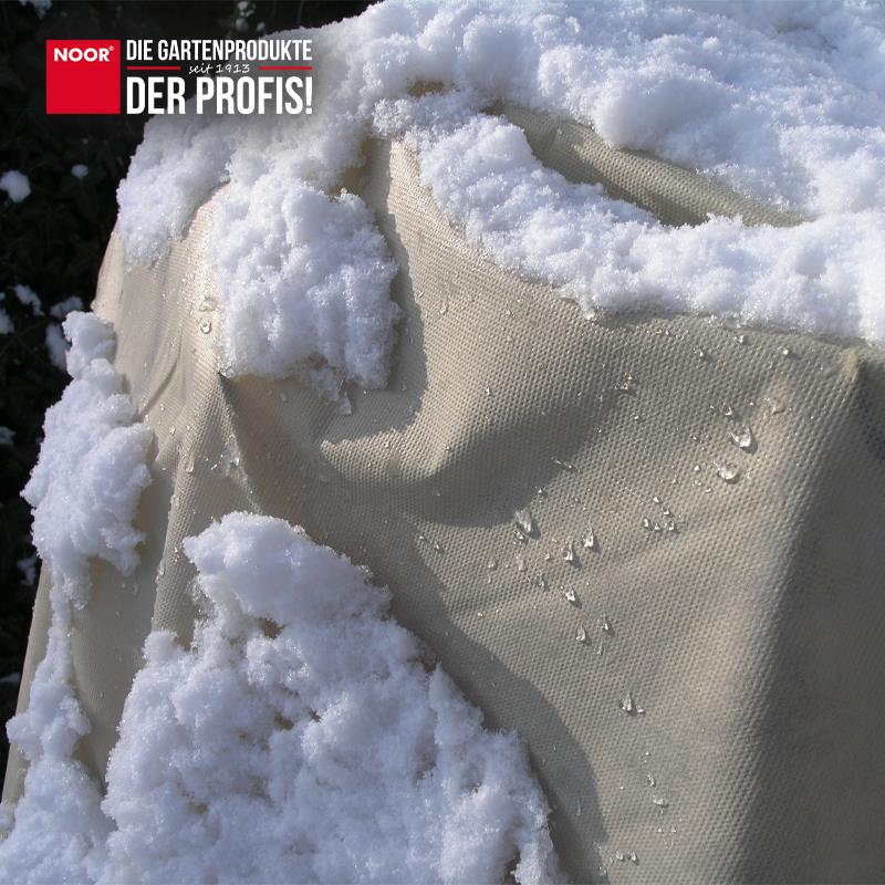 Das thermisch versiegelte Polypropylen-Vlies ist atmungsaktiv, wasser- und lichtdurchlässig. Es schützt zuverlässig vor Frost, Schnee und austrocknenden Winden. Ein besonderer Vorteil: In den Gewebefasern sammelt sich Kondenswasser, das bei Frost gefriert und so eine zusätzliche, isolierende Schutzschicht direkt auf dem Vlies bildet. Zugleich sorgt die Wärmeaufnahme bei Sonneneinstrahlung für ein wachstumsförderndes Mikroklima unter der Abdeckung.