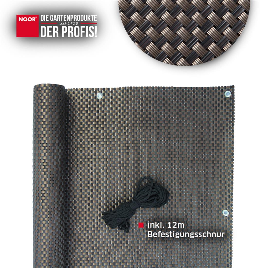 Verleihen Sie Ihrem Außenbereich eine luxuriöse Note mit der Balkonblende Rattan exklusiv von NOOR. Diese hochwertige Zierblende bietet nicht nur einen erstklassigen Schutz vor neugierigen Blicken, sondern dient auch als effektiver Windschutz für Ihren Balkon, Ihre Terrasse oder Ihren Zaun. Mit einer Größe von 0,90 x 3 m und einer attraktiven Rattanoptik ist sie die perfekte dekorative Lösung für ein privates Ambiente.
