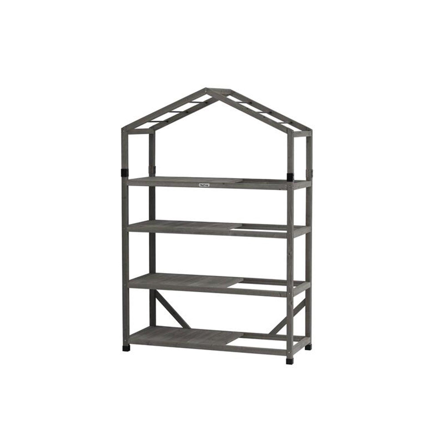 Im Inneren bietet das Gewächshaus vier breite Regalböden auf vier Ebenen, die reichlich Platz für Pflanztöpfe, Anzuchtschalen und Kräutergefäße bieten. Die Regalböden sind herausnehmbar, sodass auch größere Pflanzen problemlos untergebracht werden können und sich der Innenraum flexibel anpassen lässt.
